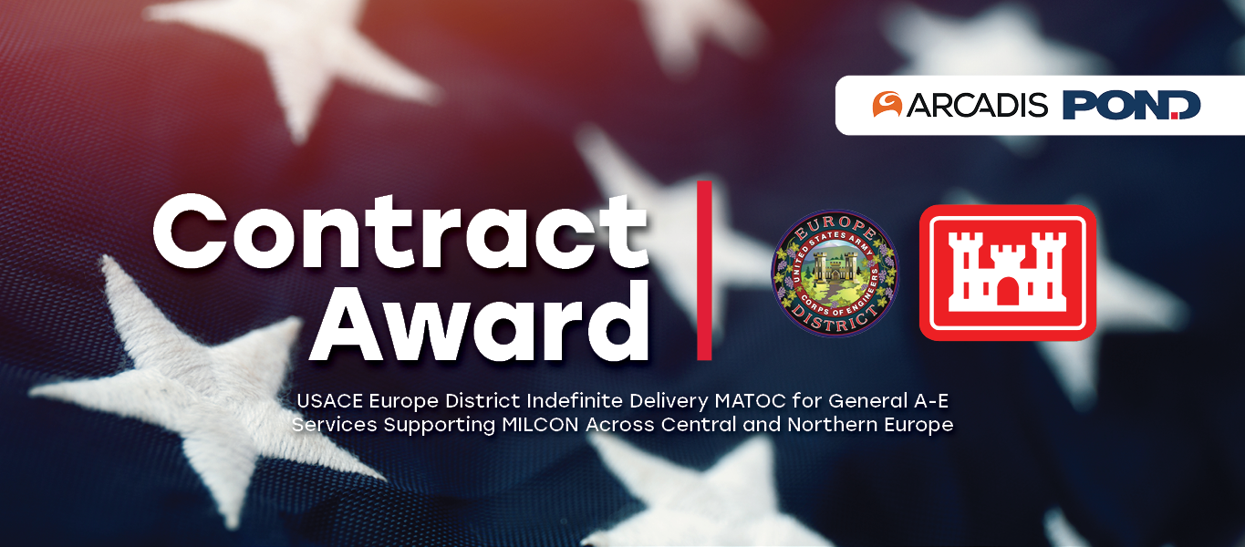 ATLANTA – (May 27, 2025) – Pond & Company (“Pond”), an industry leader in engineering, architecture, planning and construction management services, today announced that the Arcadis-Pond Joint Venture (JV) has been awarded a U.S. Army Corps of Engineers (USACE) Europe District Indefinite Delivery Multiple Award Task Order Contract (MATOC) for General Architect-Engineer (A-E) Services. The contract carries a total shared capacity of $249 million and supports Military Construction (MILCON) projects valued over $500,000 across Germany, Poland, Czech Republic, Belgium, Luxembourg, the Netherlands, Norway, and Denmark.